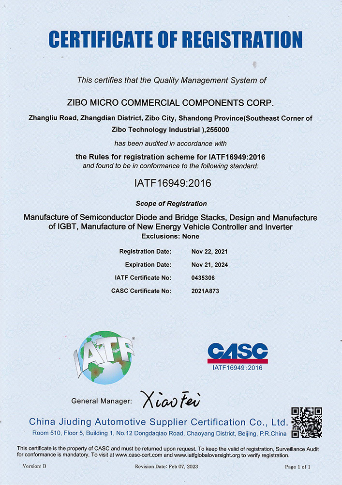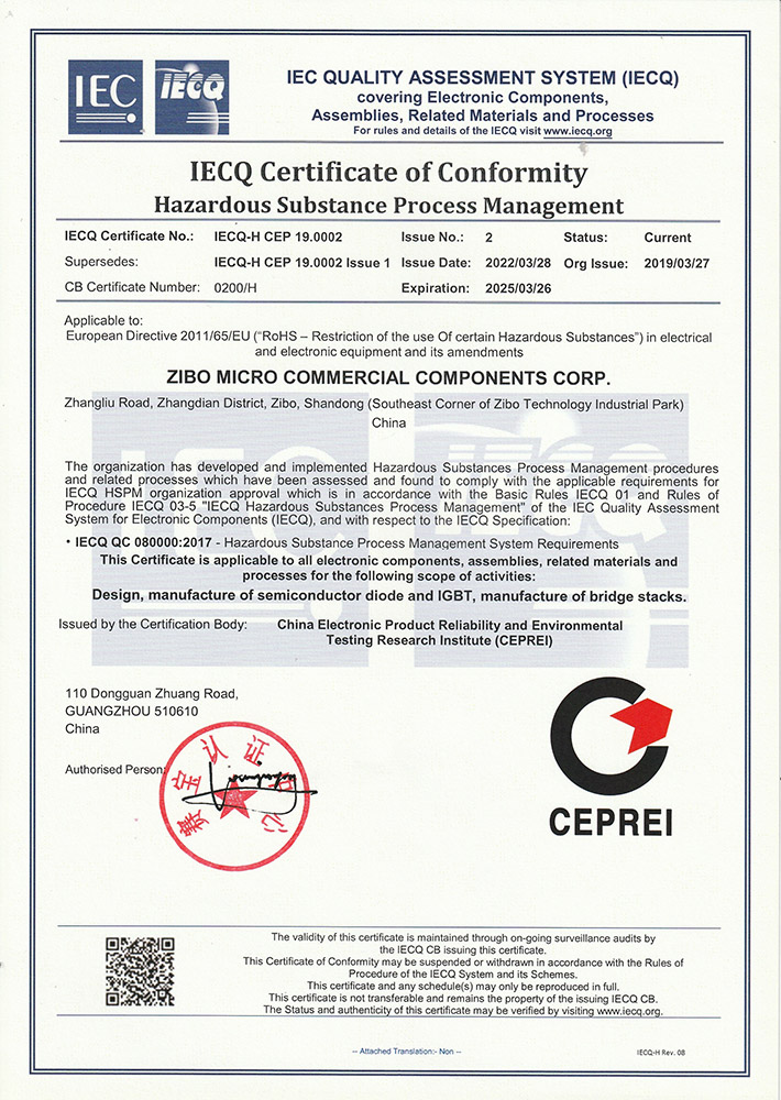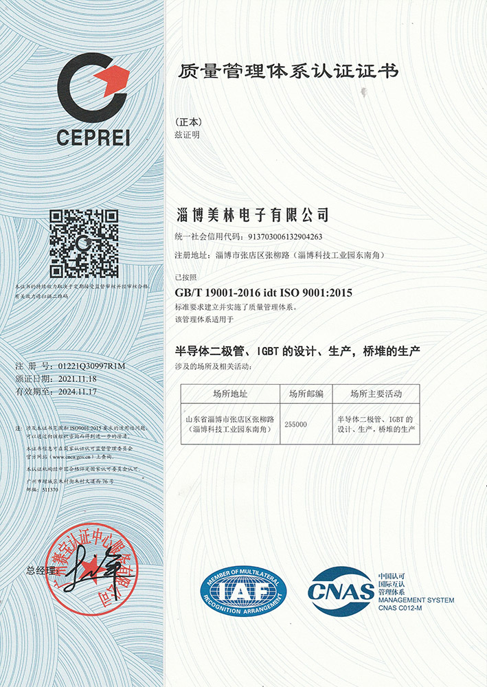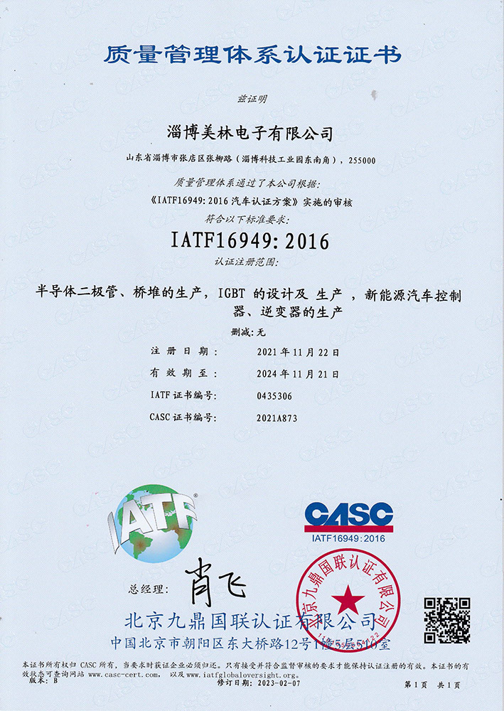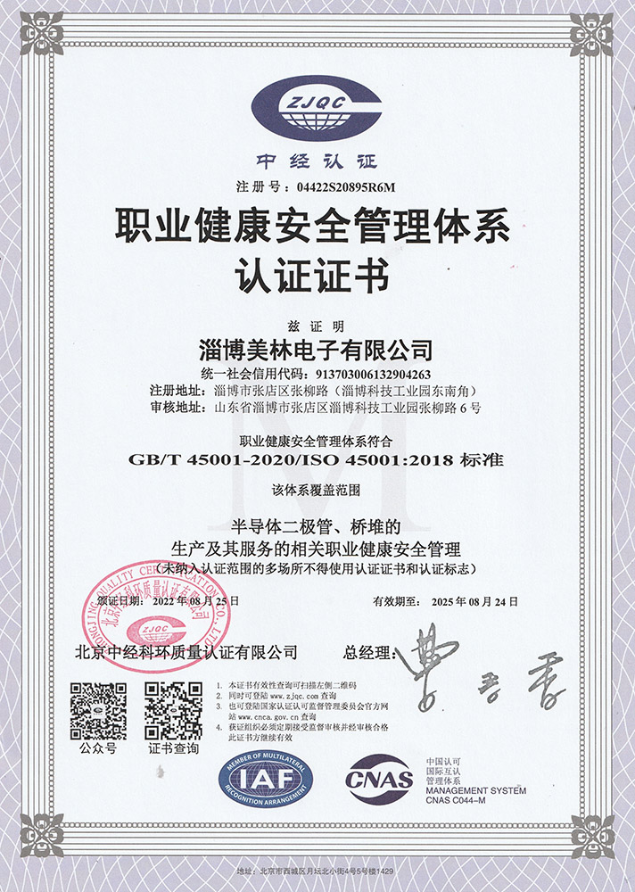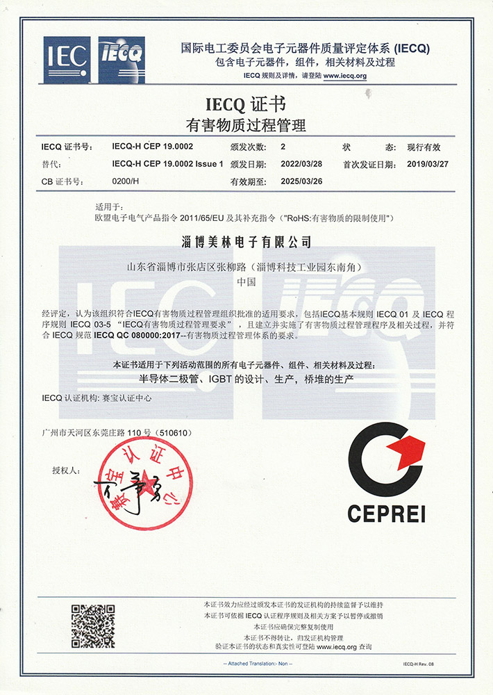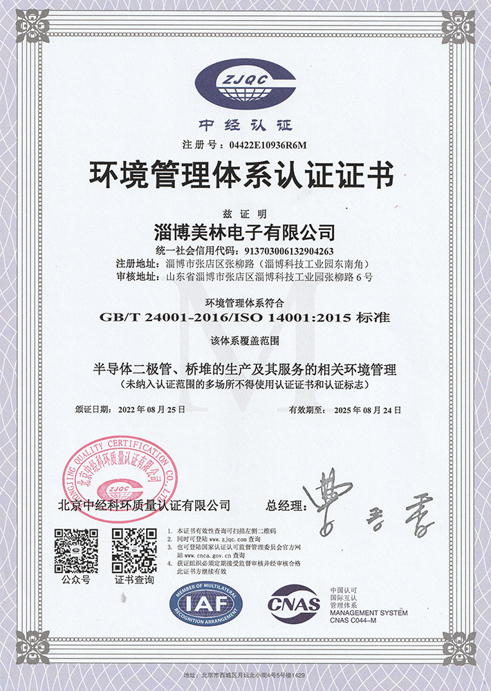 美林電子先后通過了ISO9001、IATF16949、QC080000等質(zhì)量體系認(rèn)證和有害物質(zhì)過程管理體系認(rèn)證,通過了ISO14001環(huán)境管理體系認(rèn)證、ISO45001職業(yè)安全健康管理體系認(rèn)證和AEC-Q101、UL等產(chǎn)品認(rèn)證。